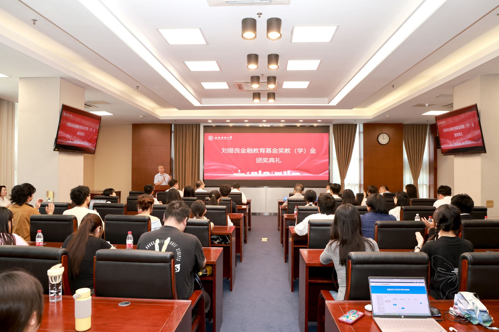 6月13日下午,首届刘锡良金融教育基金奖教(学)金颁奖典礼在柳林校区举行。刘锡良教授,党委常委、副校长、刘锡良金融教育基金奖教(学)金评审委员会主席王擎,获奖代表,学院(研究院)负责人、师生代表参加典礼。