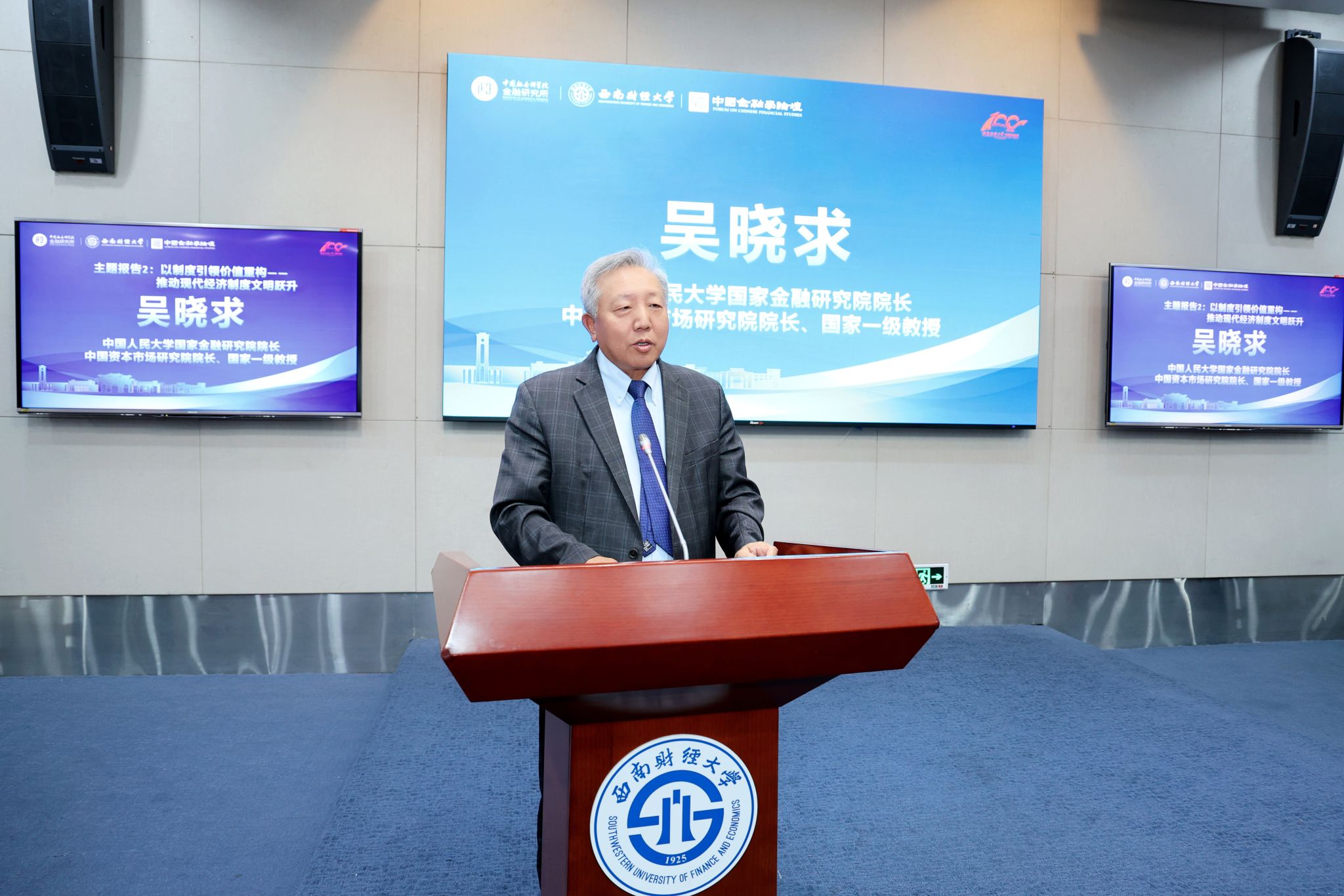 国家金融与发展实验室理事长、中国社会科学院学部委员李扬和中国人民大学国家金融研究院院长、中国资本市场研究院院长、一级教授吴晓求分别围绕“刍议强大的货币”和“硬实力与软实力:中国实现金融强国的两大支柱”进行主旨演讲。学校党委常委、副校长李志生、王擎分别主持了主旨演讲和开幕式。