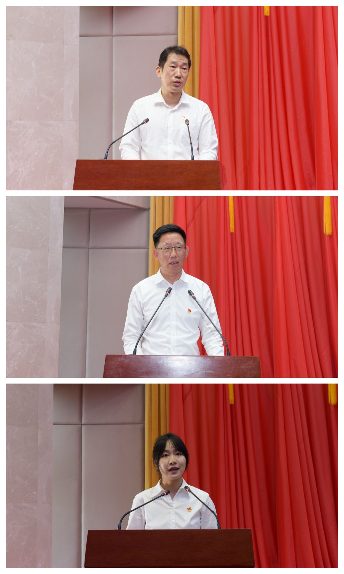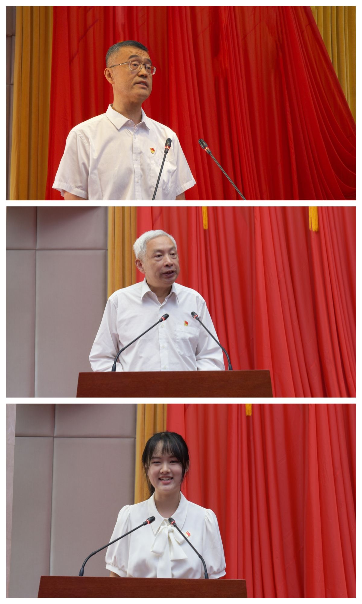 获奖代表发言环节,受表彰先进基层党组织代表郑茂表示将继续坚持以高质量党建统领高质量发展,努力为加快建设财经特色鲜明的世界一流大学贡献力量。受表彰先进个人代表江林旭表示将始终与党同心、与党同行,努力为教育强国建设、为学校新百年伟业贡献“银发力量”。新党员代表杨景茹表示将坚持锤炼政治品格,以beat365青年党员的新身份努力书写青春华章。
