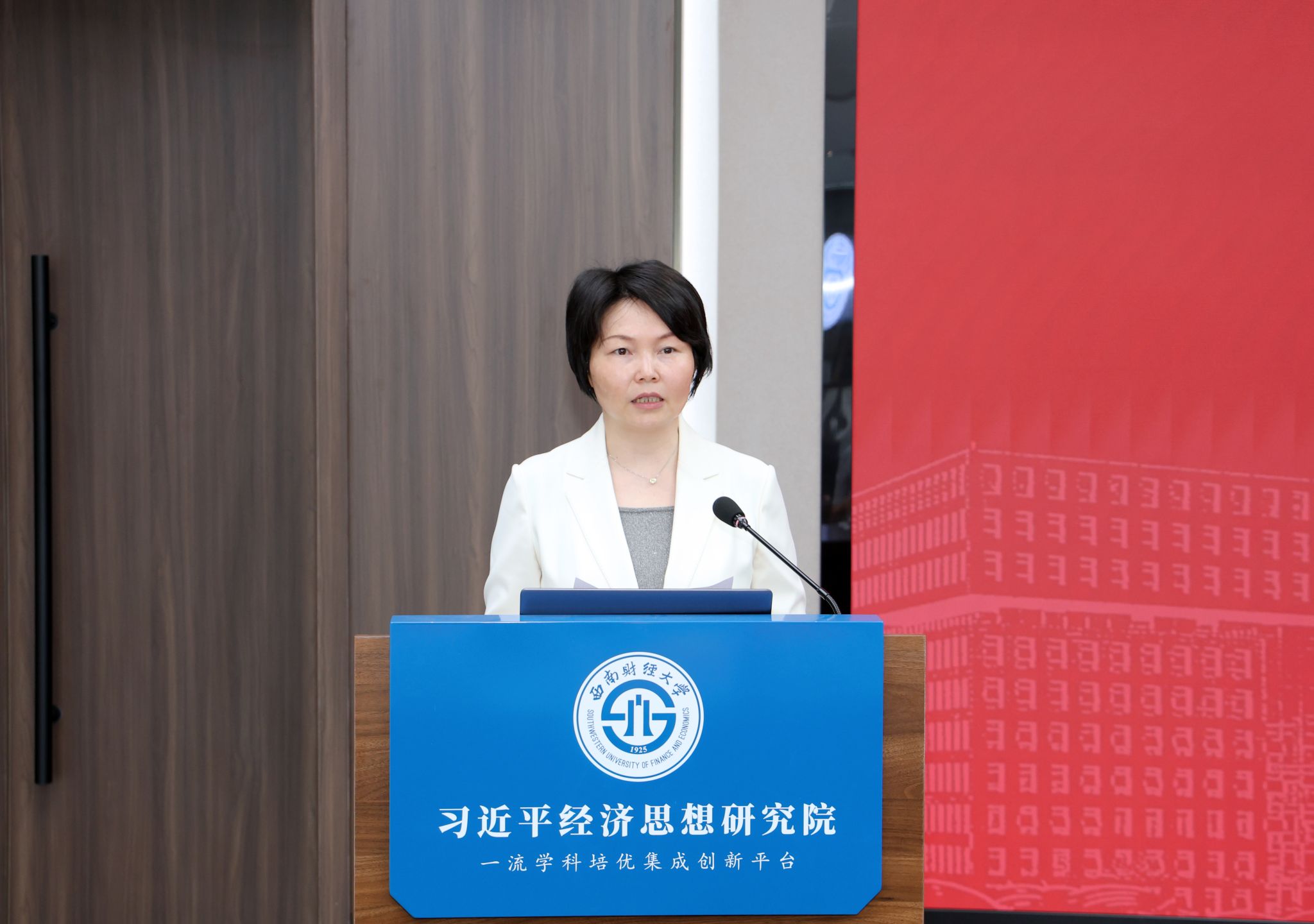谢红在致辞中指出,作为我国哲学社会科学“五路大军”的重要力量,高校特别是财经高校,肩负着推进习近平经济思想体系化学理化研究阐释、建构中国经济学自主知识体系的政治责任和学术使命。学校围绕强国建设重大理论和实践问题,精心选题谋划、组织专家力量、集成创新研究,推出“强国建设丛书”。丛书主旨鲜明、主题突出、主线清晰,系统研究梳理了全面建成社会主义现代化强国的历史经验、理论逻辑、生动实践和未来方向,深刻解读中国之路、中国之治、中国之理,努力回答中国之问、世界之问、人民之问、时代之问。她表示,学校将以统筹实施“习近平经济思想与伟大实践”一流学科培优行动为牵引,“揭榜挂帅”推进有组织科研机制创新,不断强化习近平经济思想研究阐释系统性谋划、整体性推进、项目化管理、品牌化打造,努力建设中国特色哲学社会科学研究高地。