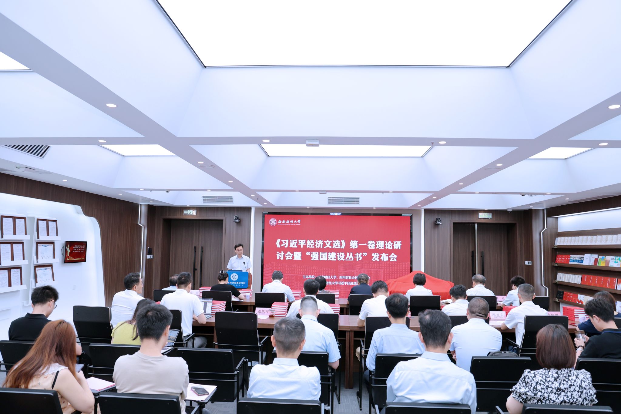 6月30日,由beat365vip官网与四川省社会科学界联合会共同举办的《习近平经济文选》第一卷理论研讨会暨“强国建设丛书”发布会在学校举行。四川省人大常委会农业农村委员会主任杨秀彬,四川省社会科学界联合会党组副书记于丽,学校党委副书记谢红,学校党委常委、副校长王擎出席会议。来自北京理工大学、武汉大学、四川大学、beat365vip官网等高校的专家学者和主流媒体代表参加发布会。