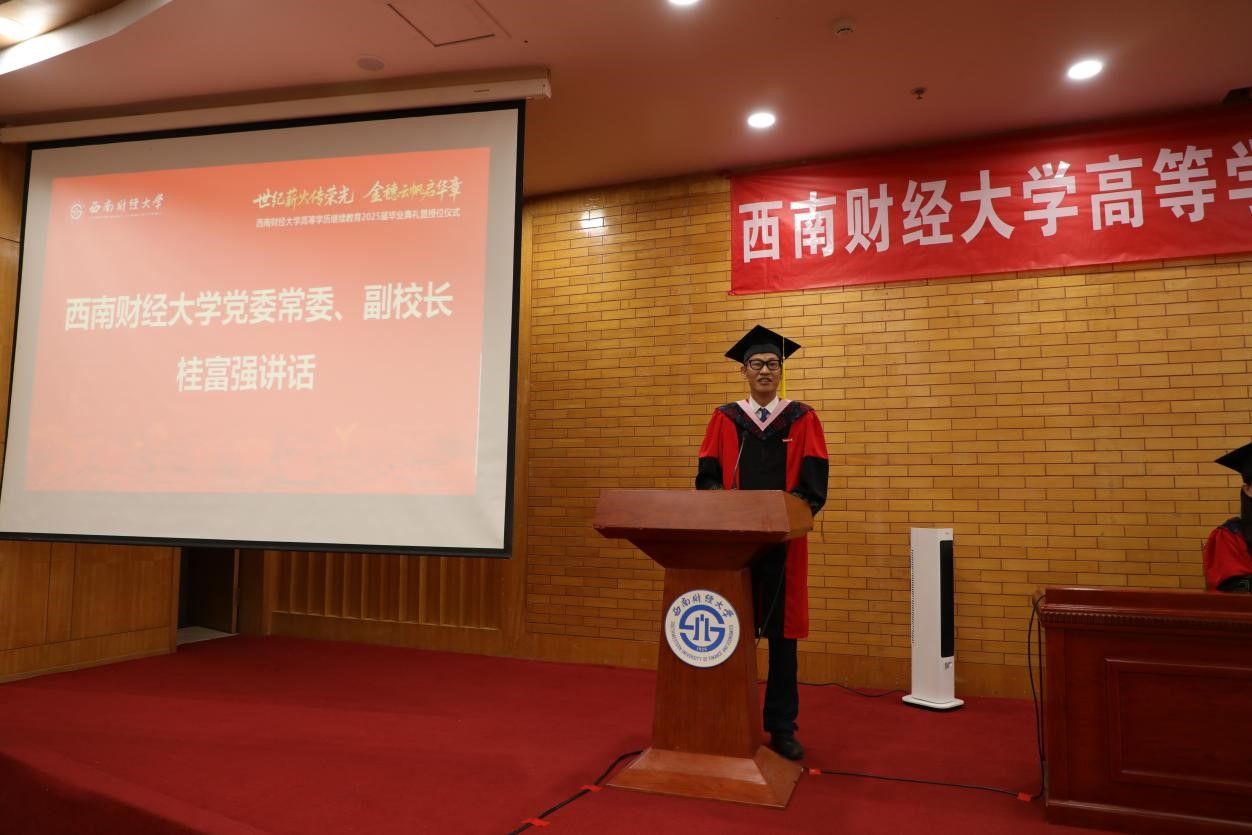 7月12日上午,学校高等学历继续教育2025届毕业典礼暨授位仪式在光华西厅举行。学校党委常委、副校长桂富强出席典礼并讲话,教务处、继续教育学院负责同志,beat365成人教育、网络教育、自学考试应用型专业2025届毕业生,以及教职工代表、家属代表参加毕业典礼。