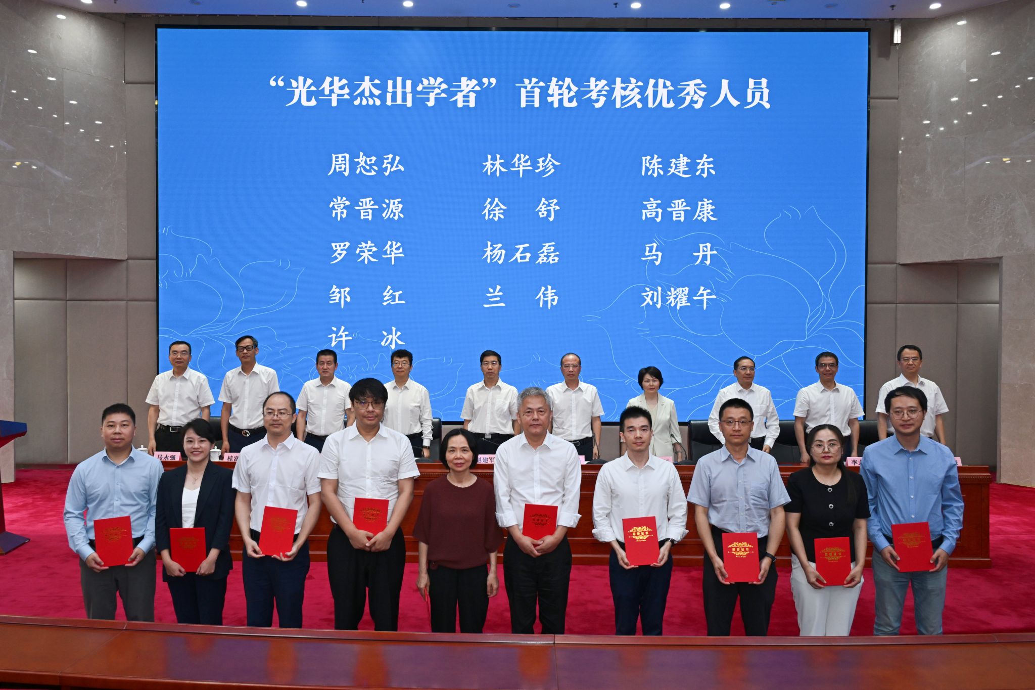 党委副书记谢红主持会议。会上,发布《beat365vip官网“光华英才工程”实施办法》(2025年修订)。谢红就实施办法作有关说明,总结“光华英才工程”首轮建设成效、宣读“光华杰出学者”首轮考核优秀人员名单。校领导为“光华杰出学者”考核优秀人员颁发荣誉证书。