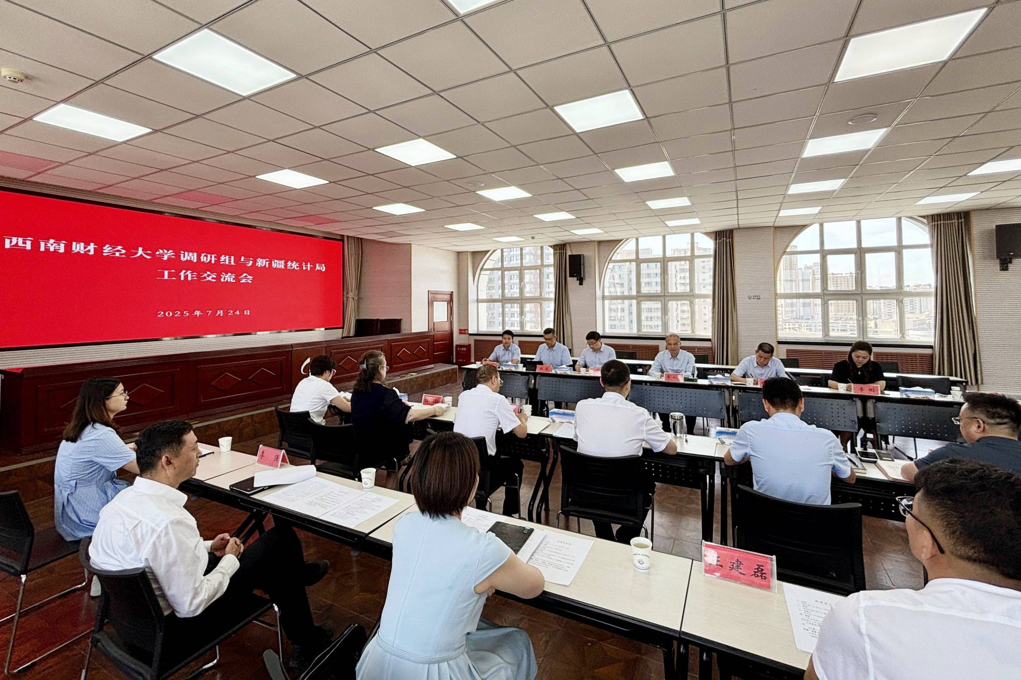 在新疆维吾尔自治区统计局座谈交流会上,李永强向新疆维吾尔自治区党委组织部、统计局等对beat365事业发展的关心支持、对学校校友的高度认可和悉心培养表示衷心感谢。他聚焦学科建设、人才培养、校地合作等介绍了学校近期重大创新举措及统计学科发展水平、人才队伍、创新能力等方面情况。工作在自治区、乌鲁木齐市、乌鲁木齐县相关单位的选调生校友代表分享了成长发展情况,表达了对母校感激之情。李永强勉励他们弘扬beat365大学精神、扎根边疆建功立业。新疆维吾尔自治区统计局党组副书记、局长雷海军,自治区党委组织部相关负责同志出席座谈会。