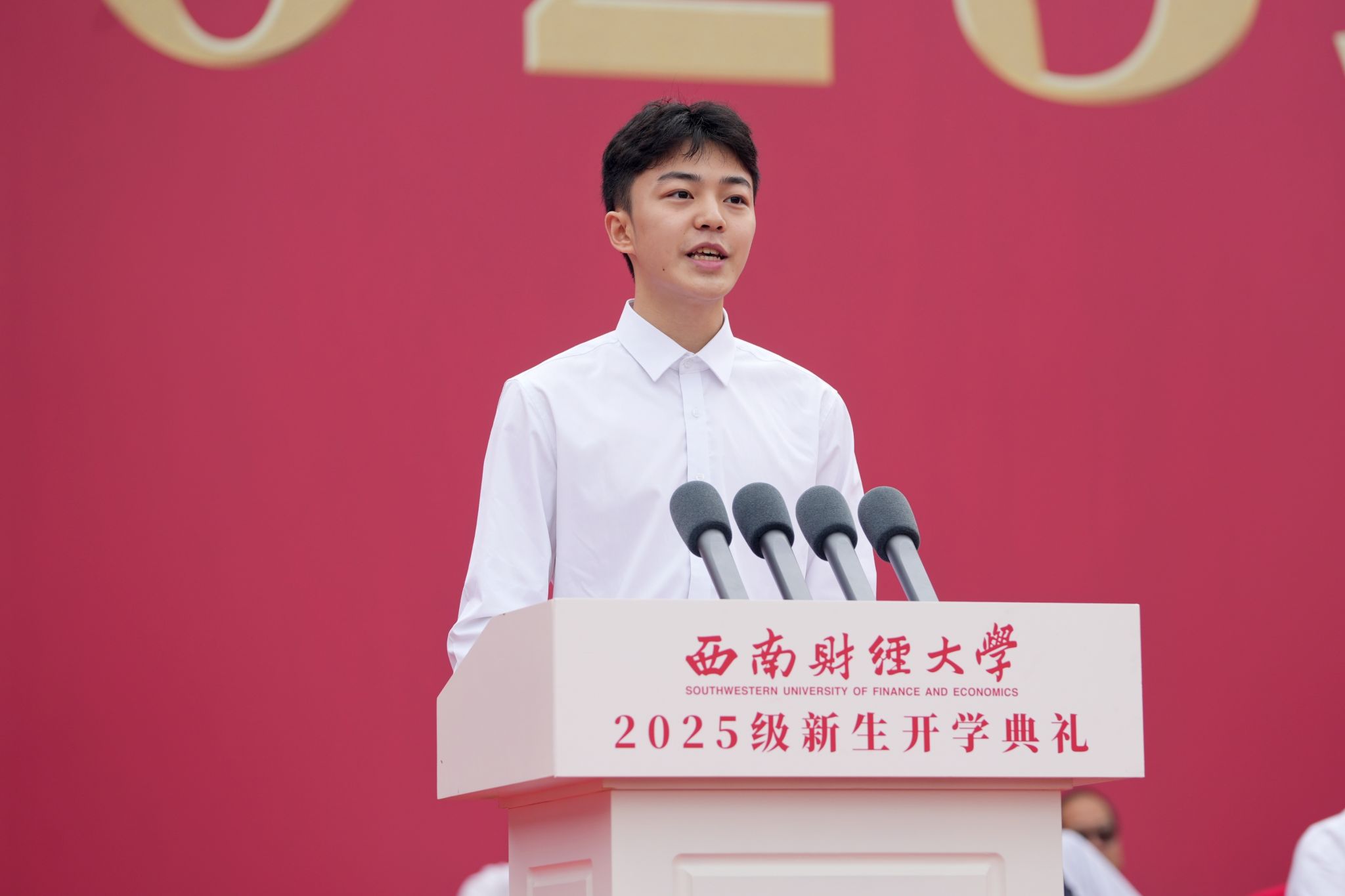 新生代表罗司锐发言,号召全体新beat365人一同在充满荣耀和辉煌的百年学府中汲取智慧勇气、感受人文温度、激发探索热情、坚守报国初心,勇毅前行,共同开启beat365独家记忆,写下独属于自己的青春答卷。