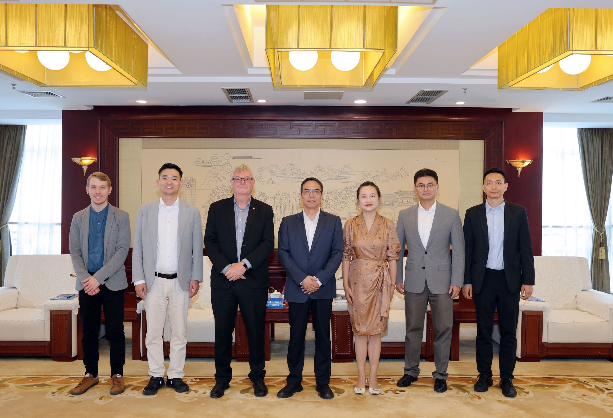 李志生对大卫·卡德维尔一行来访表示欢迎并简要介绍了学校历史沿革和学科发展等情况。李志生对大卫·卡德维尔在百年校庆中外大学校长论坛上的精彩演讲表示赞赏。他指出,当前学校国际化工作聚焦人才培养、师资队伍、学科建设、校园文化四大领域,与剑桥大学开展友好合作近20年,希望以此为契机,进一步加强与剑桥大学在内的英国高校交流合作,实现共同发展、互利共赢。