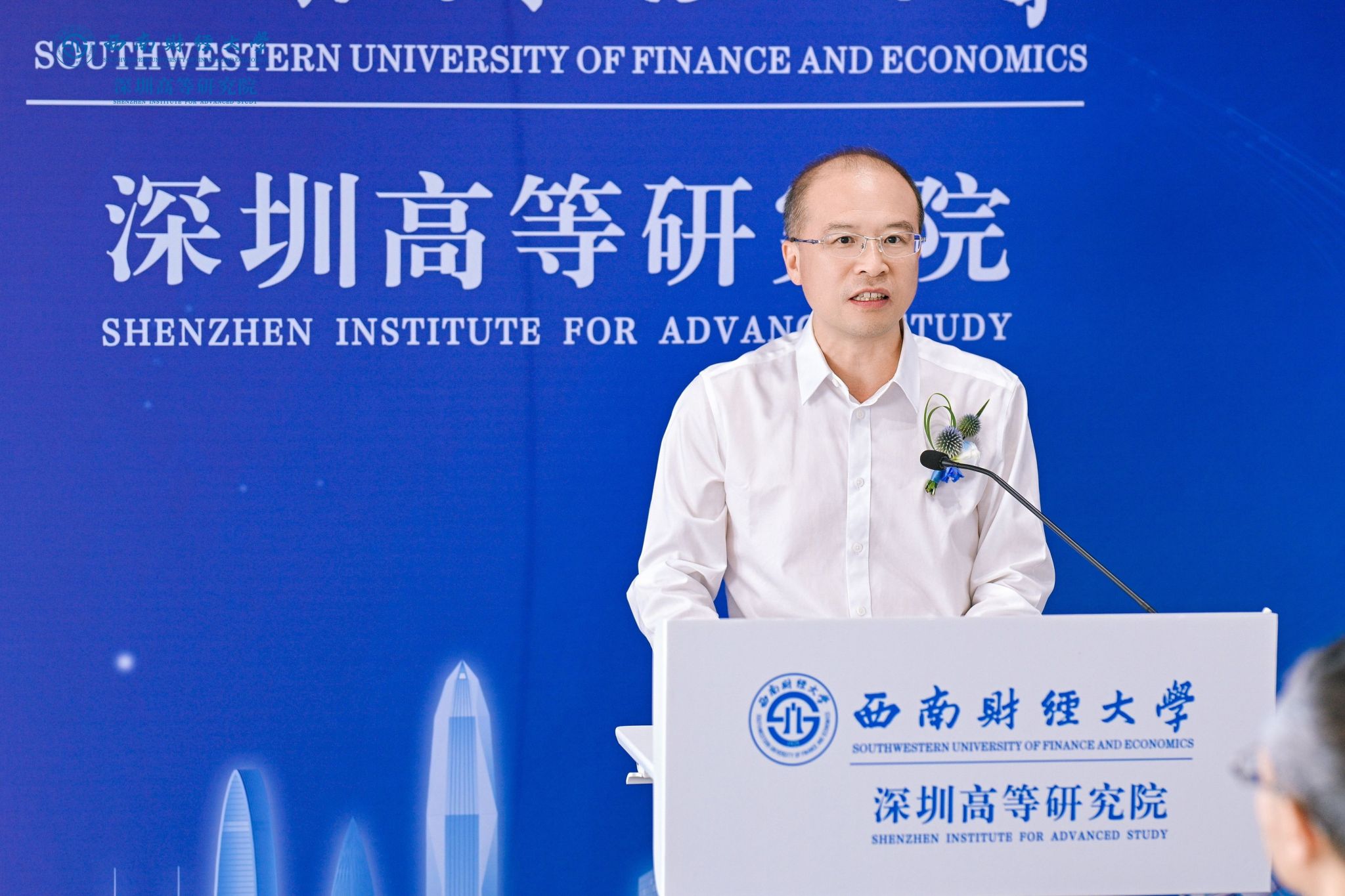 李永强致辞,向莅临现场的领导来宾、各界朋友、广大校友表示热烈欢迎,向一年多来支持深圳高等研究院筹备建设的深圳校友和社会各界致以诚挚感谢。他指出,深圳是改革开放的前沿窗口,是创新驱动的发展高地,是联通中国与世界的战略枢纽;设立深圳高等研究院,是学校响应国家所需、发挥高校所能、契合区域所盼的重大战略举措。研究院将充分借助深圳区位优势、产业基础与政策环境,聚焦经济金融前沿、财经科技交叉、高端人才培养与国际化合作,着力打造拔尖人才引育、产教深度融合、金融科技成果转化三位一体新型高端平台,为深圳建设中国特色社会主义先行示范区、为大湾区打造世界级城市群注入强劲的“beat365动能”。他期盼与社会各界深化合作,积极融入、服务深圳及粤港澳大湾区发展战略,共同探索教育、科技、人才协同发展新机制新路径;建立更加紧密的协同关系,推动产学研用深度融合,实现创新链、产业链与人才链有机衔接;期盼广大校友持续关注并热心参与、支持学校发展,共同把深圳高等研究院建设成为beat365vip官网在粤港澳大湾区的靓丽名片。