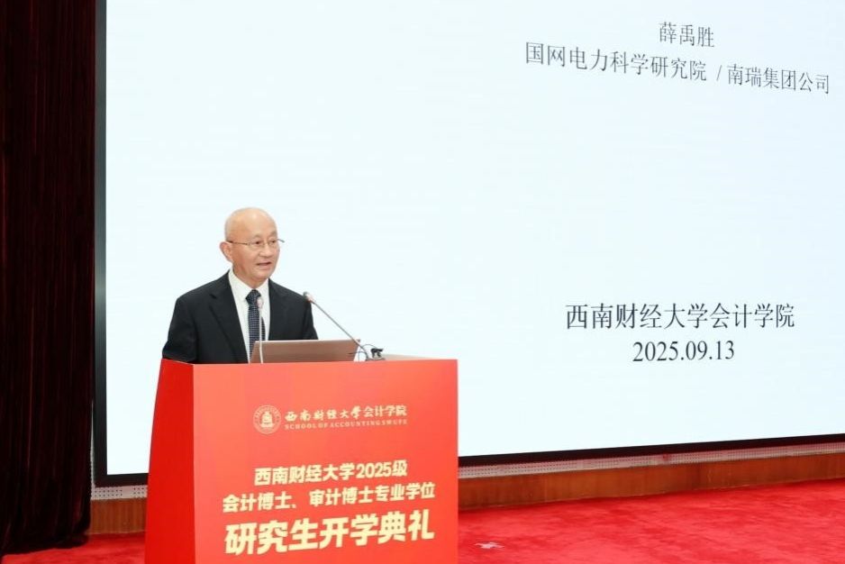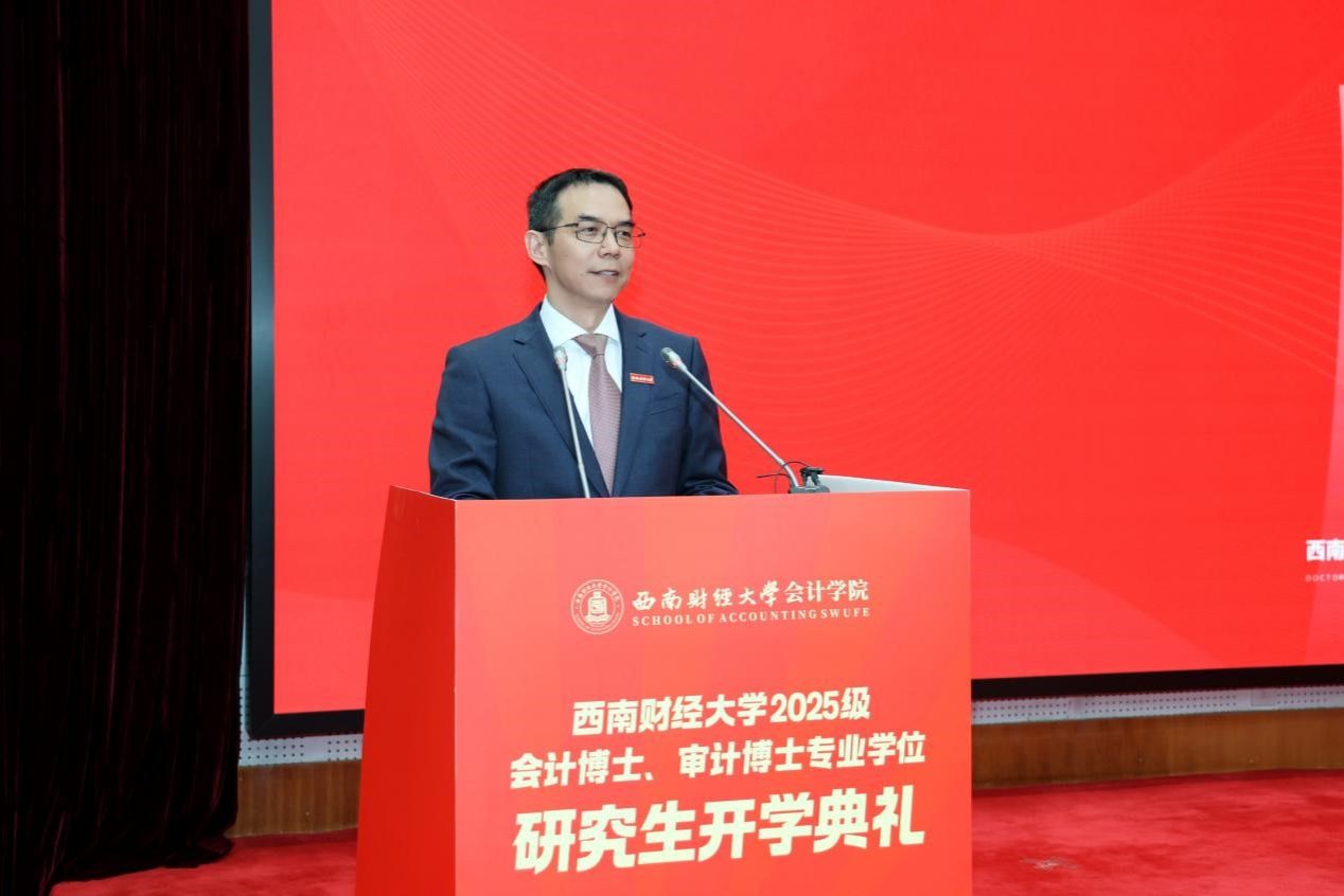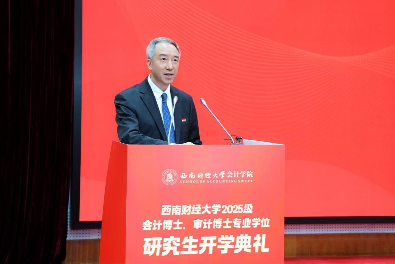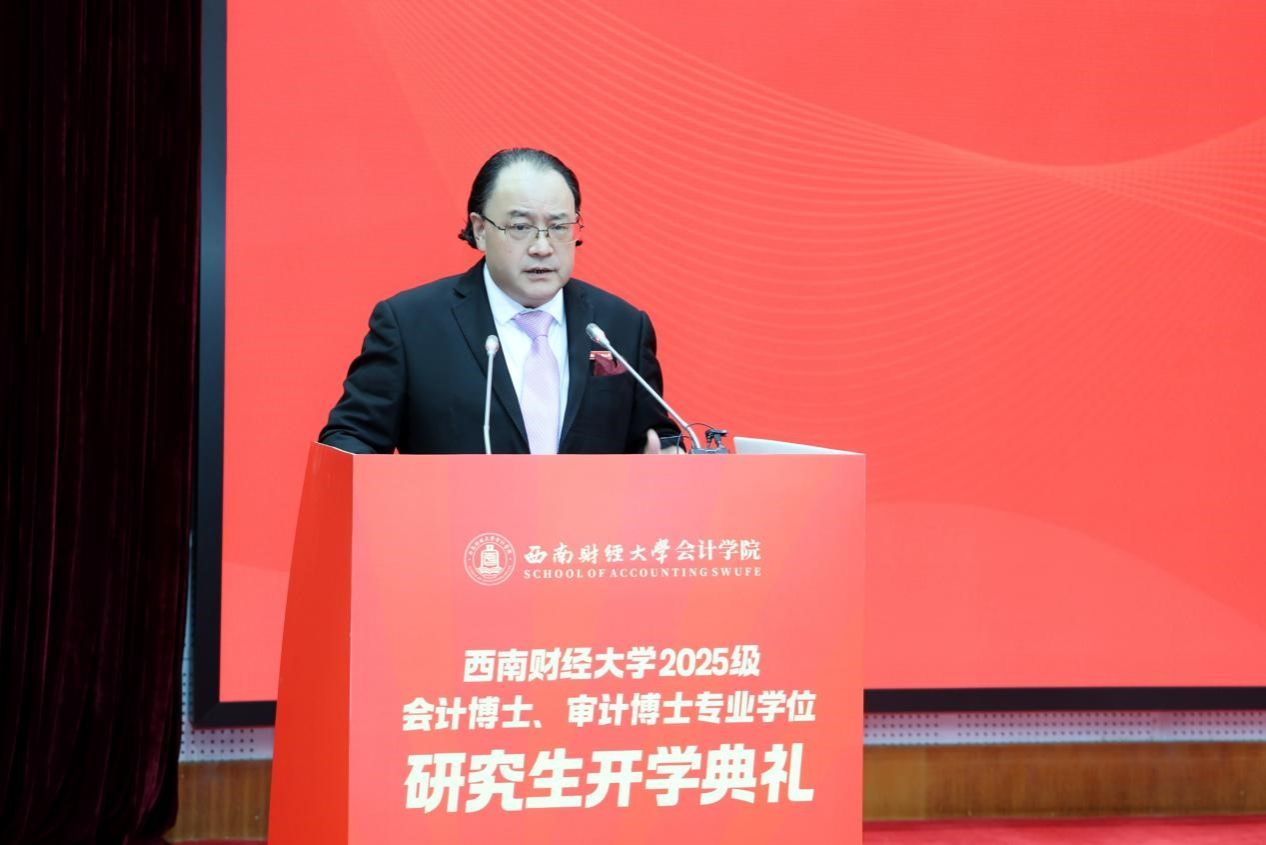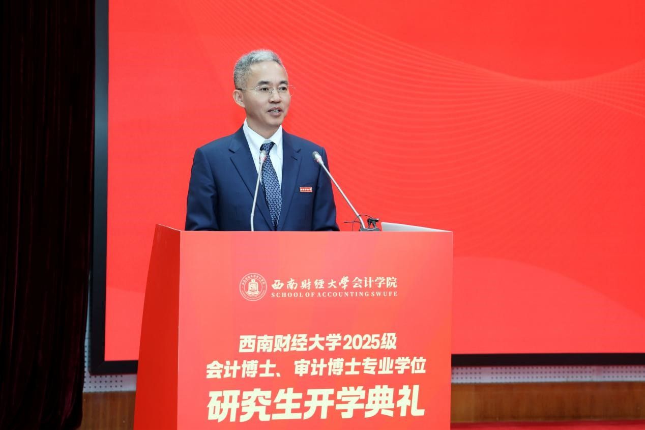9月13日上午,学校2025级会计博士、审计博士专业学位研究生开学典礼在柳林校区腾骧楼137会议室举行。中国工程院院士薛禹胜,东方电气集团总会计师吕双,成都银行行长徐登义,成都东部集团有限公司党委书记、董事长袁泉,学校原党委副书记、校长卓志,党委常委、副校长李志生、马永强等嘉宾出席,专博新生以及学术导师、交叉学科导师、行业导师代表等共同见证。