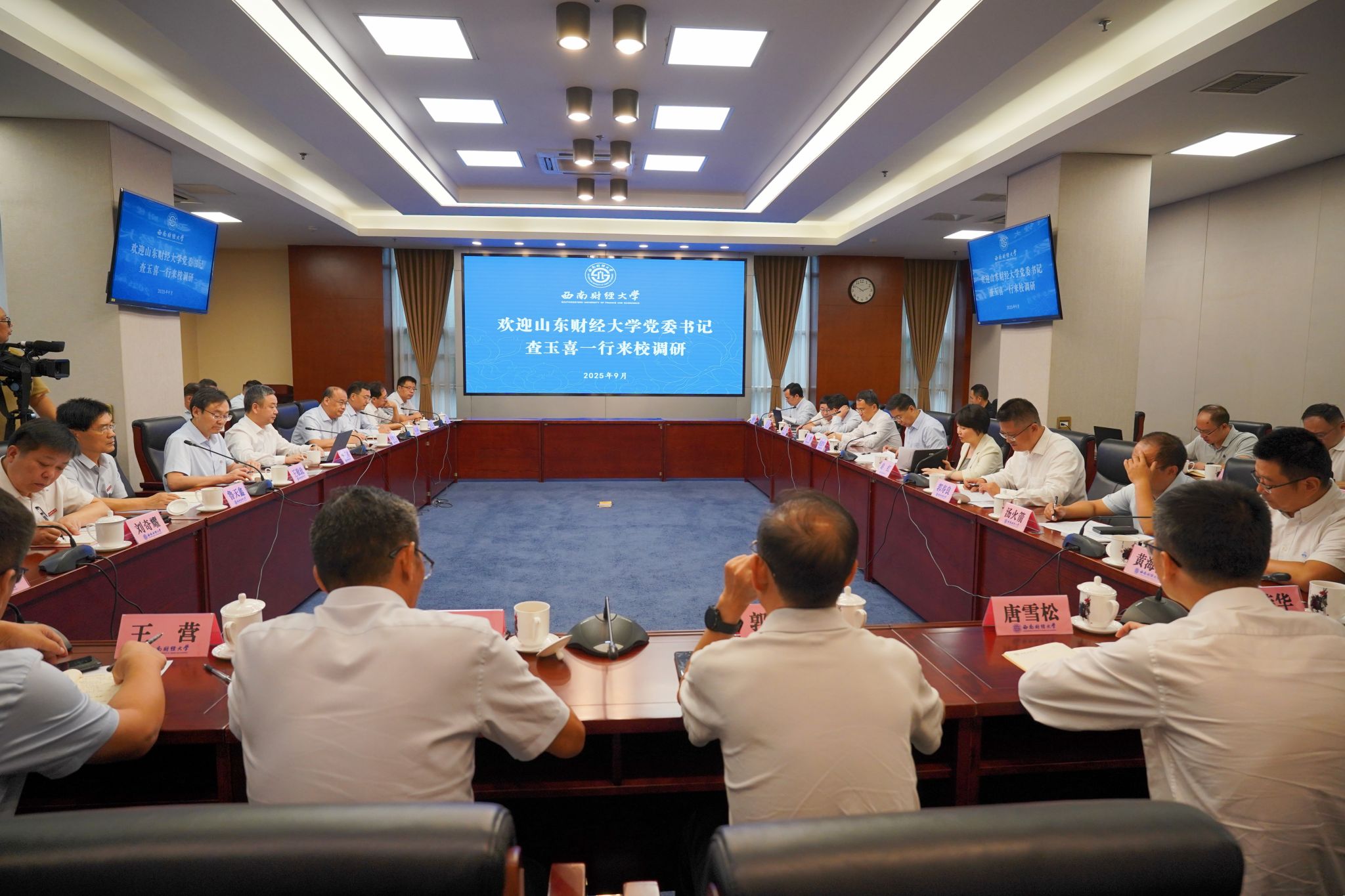 9月16日,山东财经大学党委书记查玉喜一行来校调研交流。学校党委书记赵建军会见查玉喜一行并座谈。