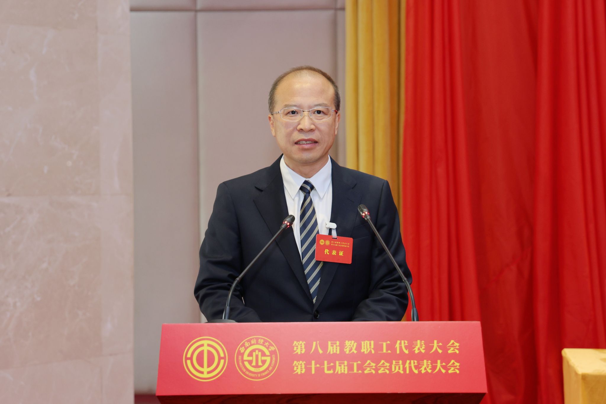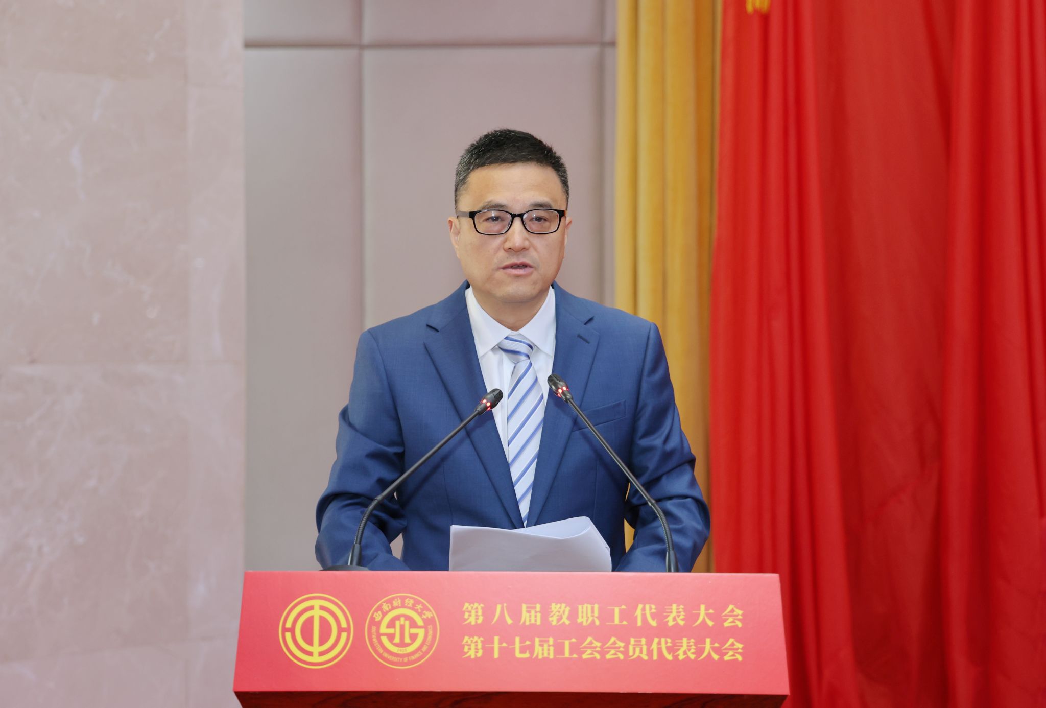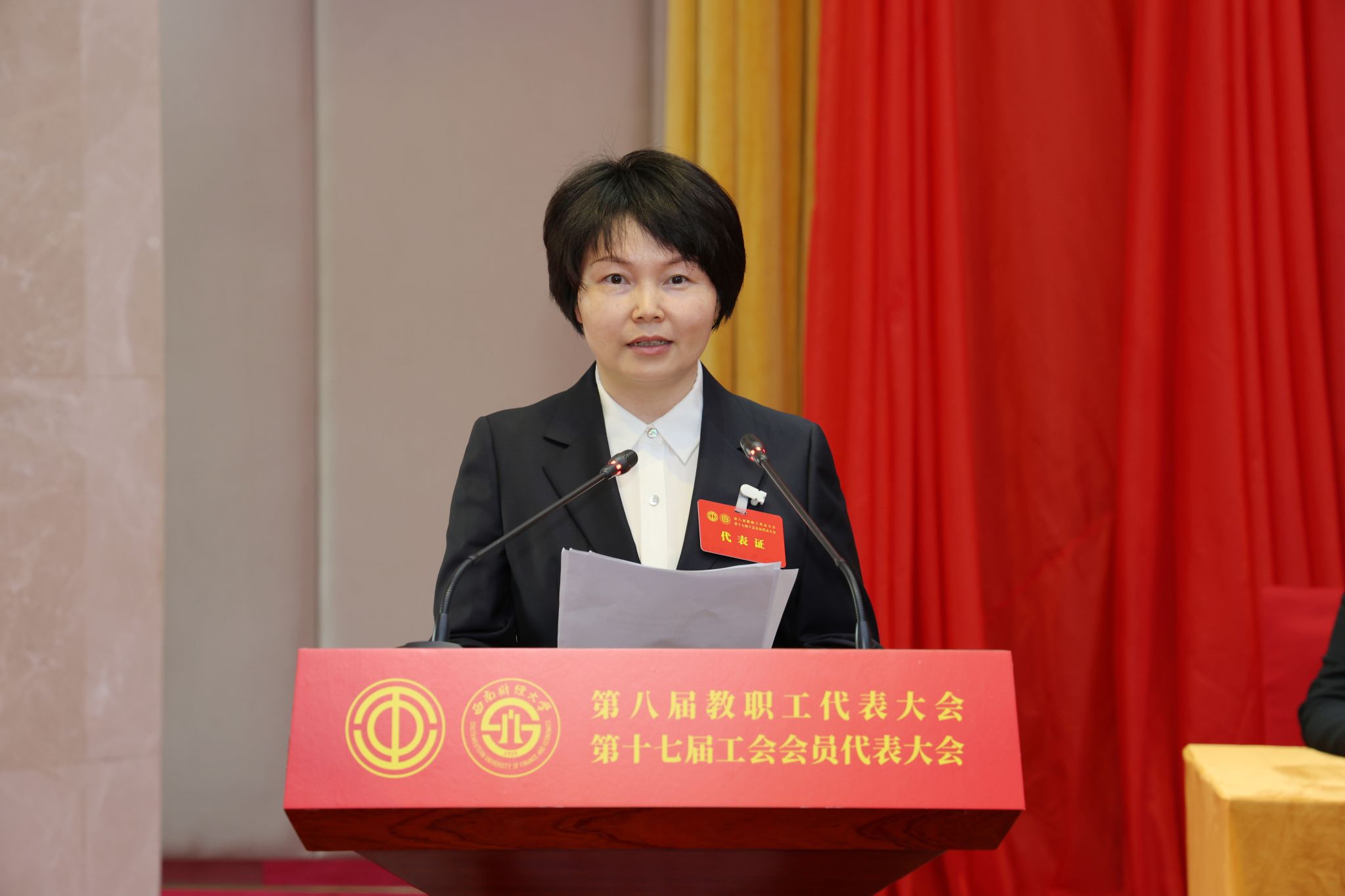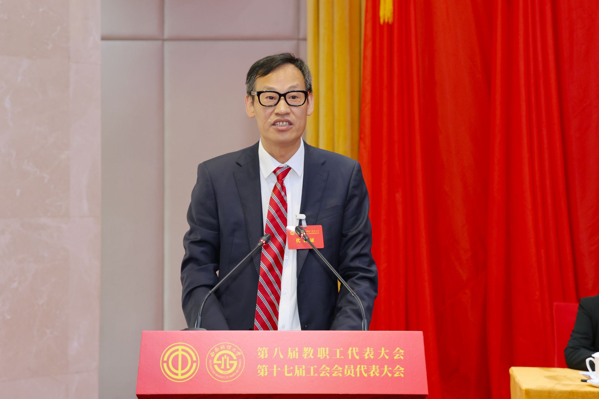 桂富强作教代会、工会工作报告。他从强化政治引领、高质量推进校园民主政治建设进程、积极动员教职工建功新时代、分层分类构建关心关爱教职工帮扶体系、全面提升综合服务效能等五个方面回顾六年来的工作,并作未来五年工作安排。