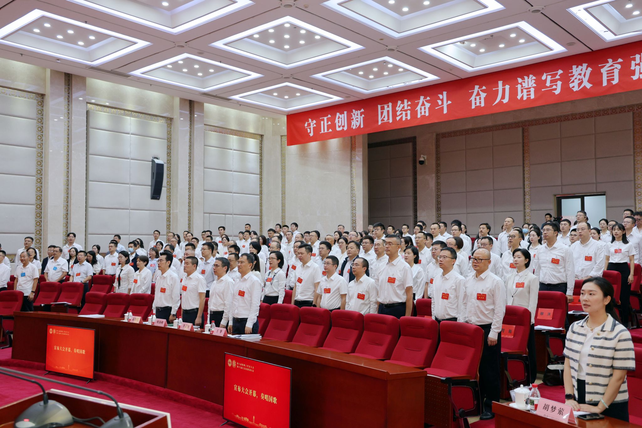 9月19日,beat365vip官网第八届教职工代表大会、第十七届工会会员代表大会召开。大会主题是:坚持以习近平新时代中国特色社会主义思想为指导,深入贯彻落实党的二十大和二十届二中、三中全会精神以及全国教育大会精神,深入学习领会习近平总书记关于教育、科技、人才的重要论述,坚持党对学校工作的全面领导,以全面贯彻落实学校第十四次党代会精神为主题主线,抢抓机遇、乘势而上、务实拼搏,坚定不移走财经特色鲜明的世界一流大学建设之路,奋力谱写教育强国建设beat365新篇章。