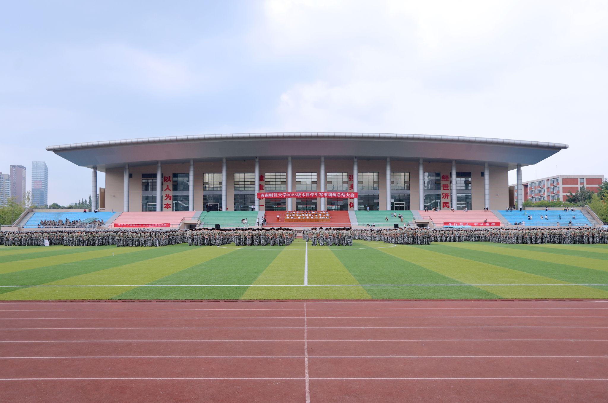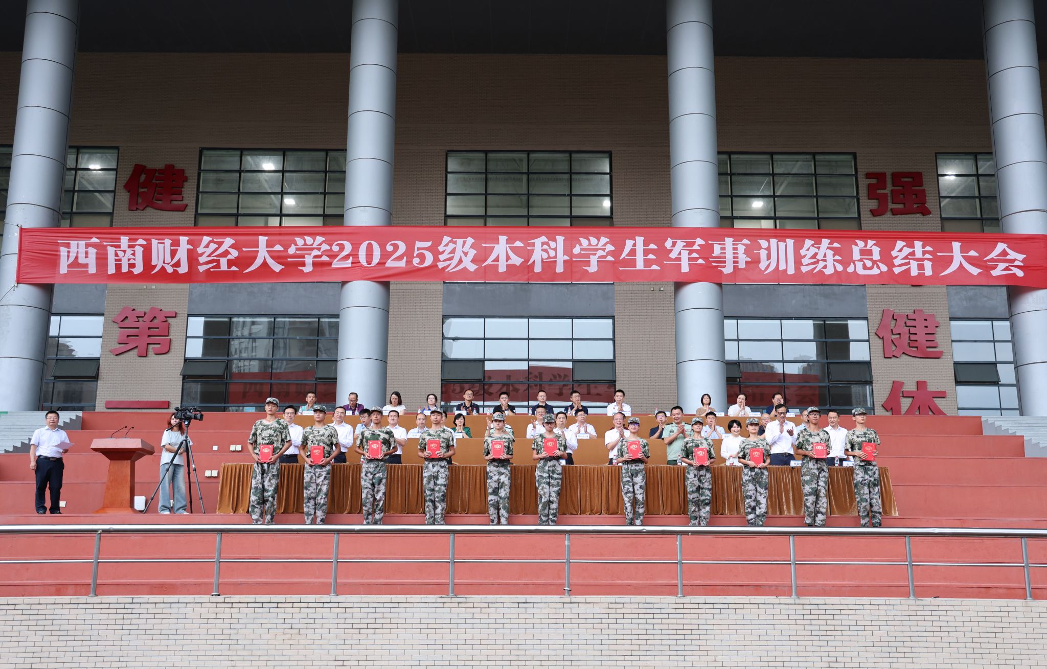 9月20日,学校2025级本科学生军训总结大会在柳林校区晨曦运动场举行,集中检验军训成果,表彰一批在军训中表现突出的先进个人。学校党委书记赵建军,党委副书记、校长李永强,党委副书记、纪委书记孙殿明,党委副书记谢红、明海峰,党委常委、副校长桂富强、马永强、王擎、盖凯程,武警成都支队支队长金泽林,副政委、纪委书记付军以及学校军训工作领导小组成员单位负责人和各本科教学单位相关负责人参加大会。