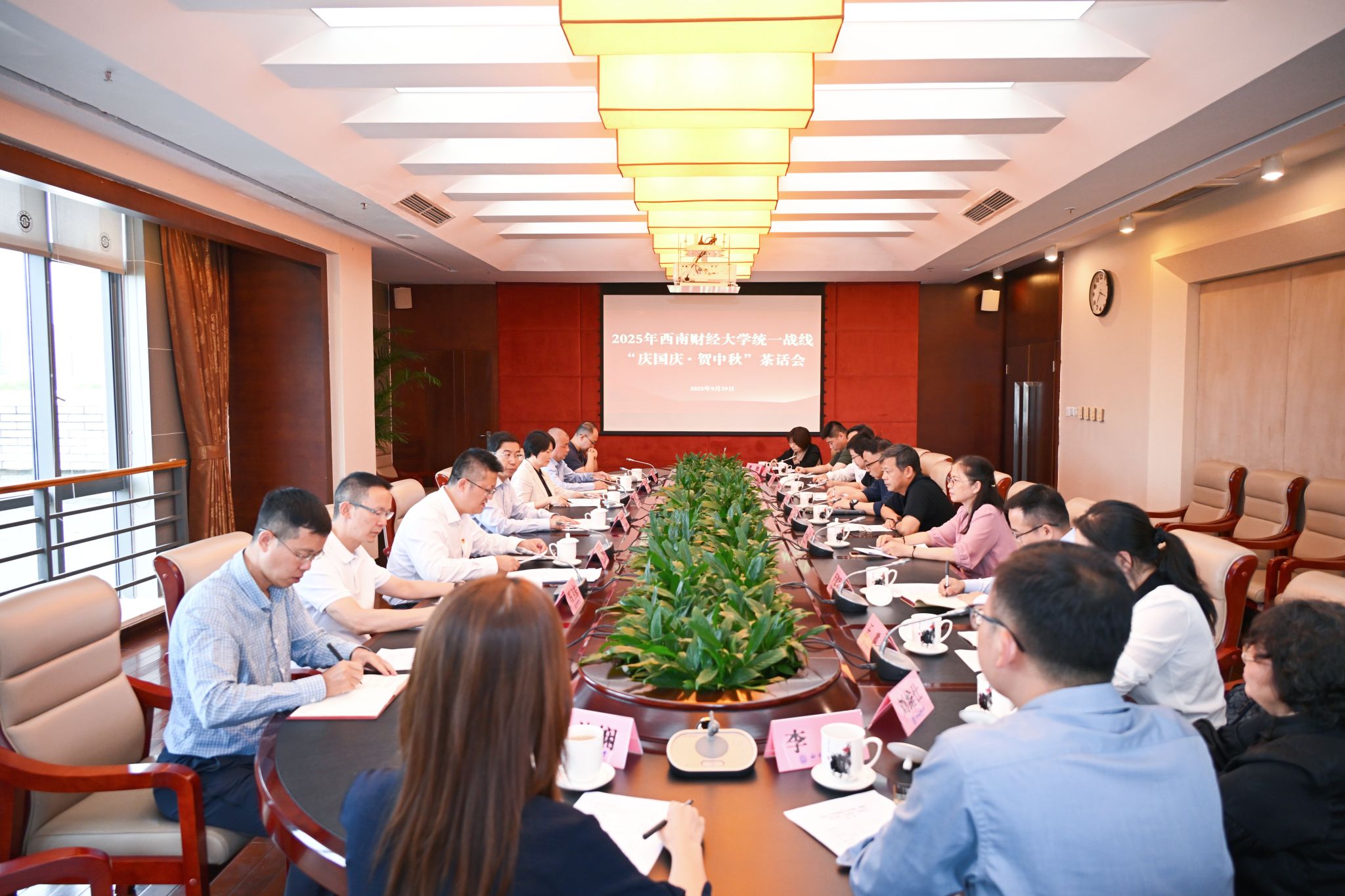 9月29日下午,学校召开统一战线2025年“庆国庆·贺中秋”茶话会。党委书记赵建军,党委副书记谢红,各党派团体负责人,无党派人士代表,各级党外人大代表、政协委员代表,港澳台教师代表,院级党组织主要负责人代表等欢聚一堂,畅叙情谊、共话发展。