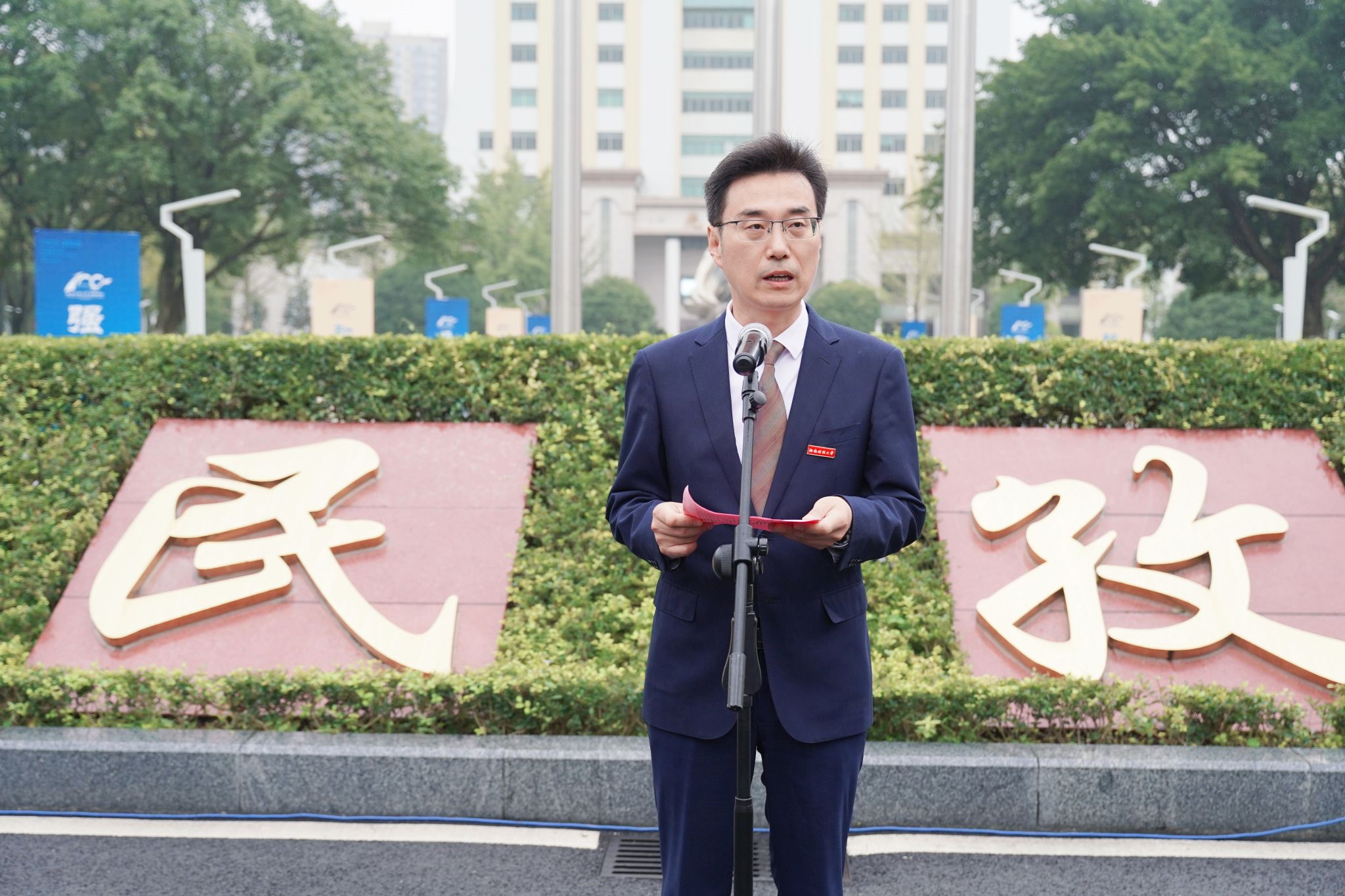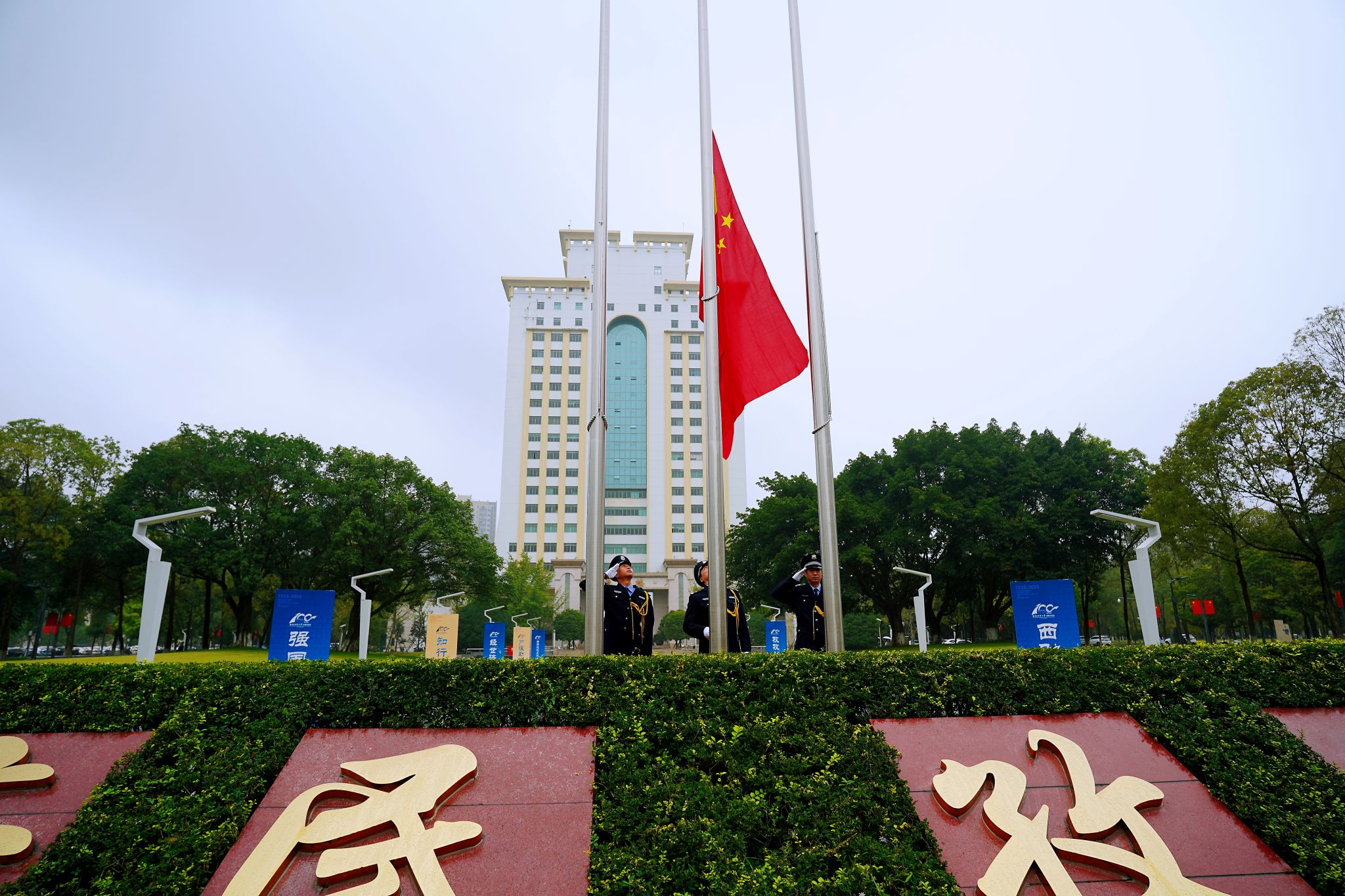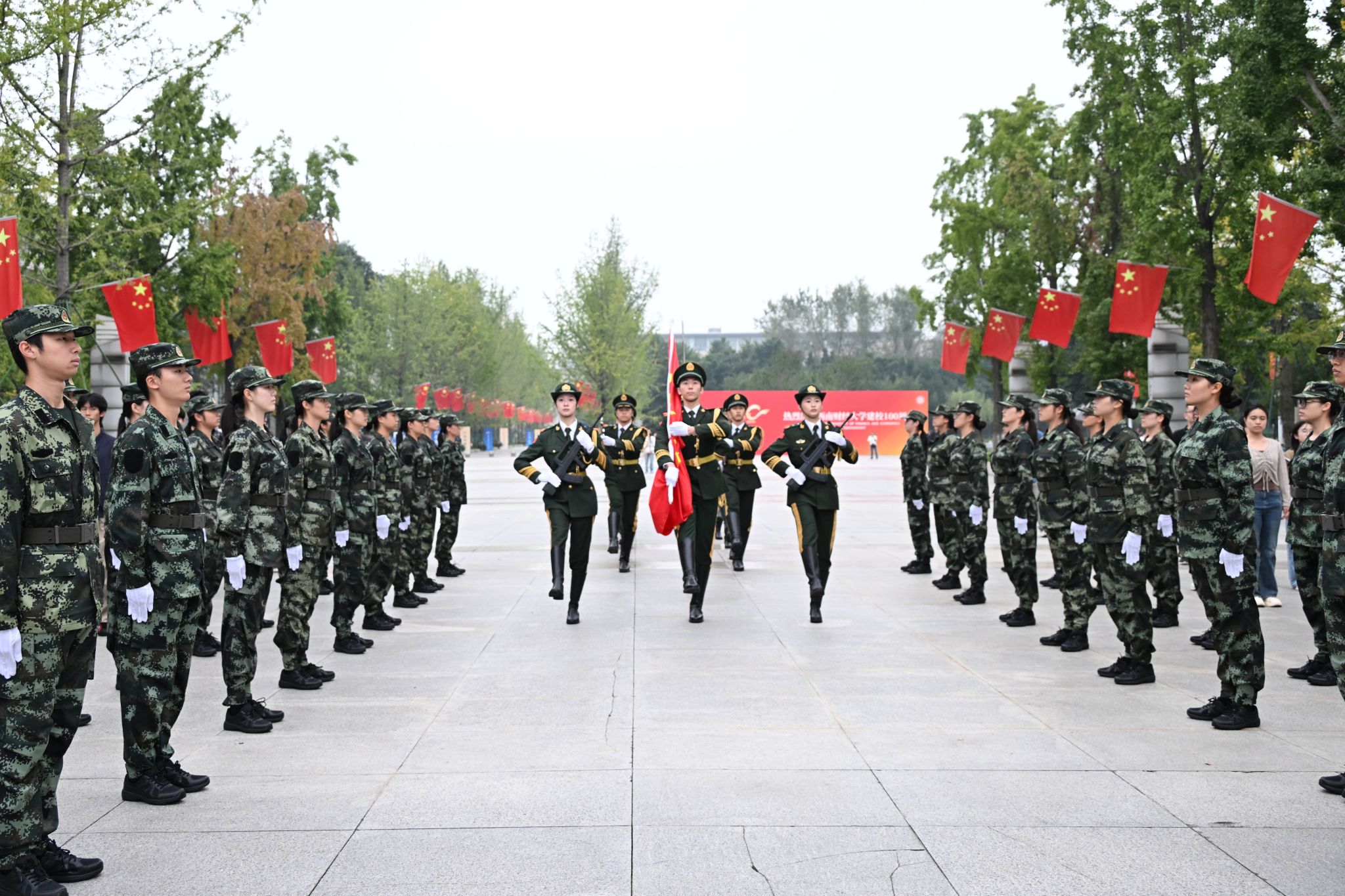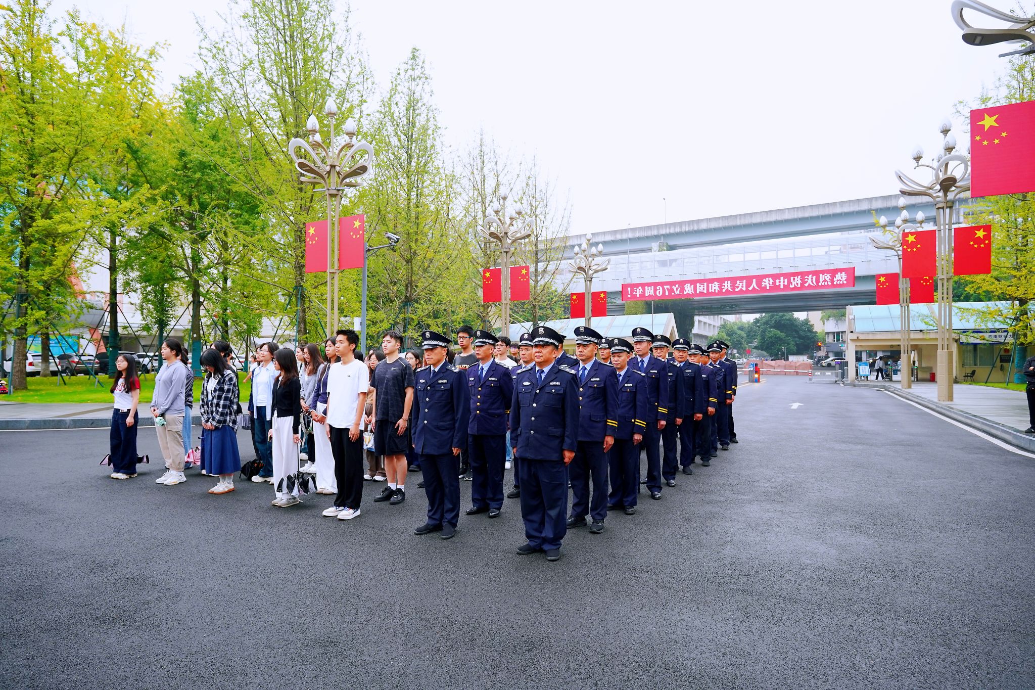 10月1日清晨,学校在光华、柳林两校区举行庆祝中华人民共和国成立76周年升国旗仪式。师生代表齐聚一堂,以庄严仪式向祖国母亲献上最诚挚的生日祝福。党委副书记明海峰,党委常委、副校长盖凯程,两校区师生代表,相关职能部门负责人参加升国旗仪式。