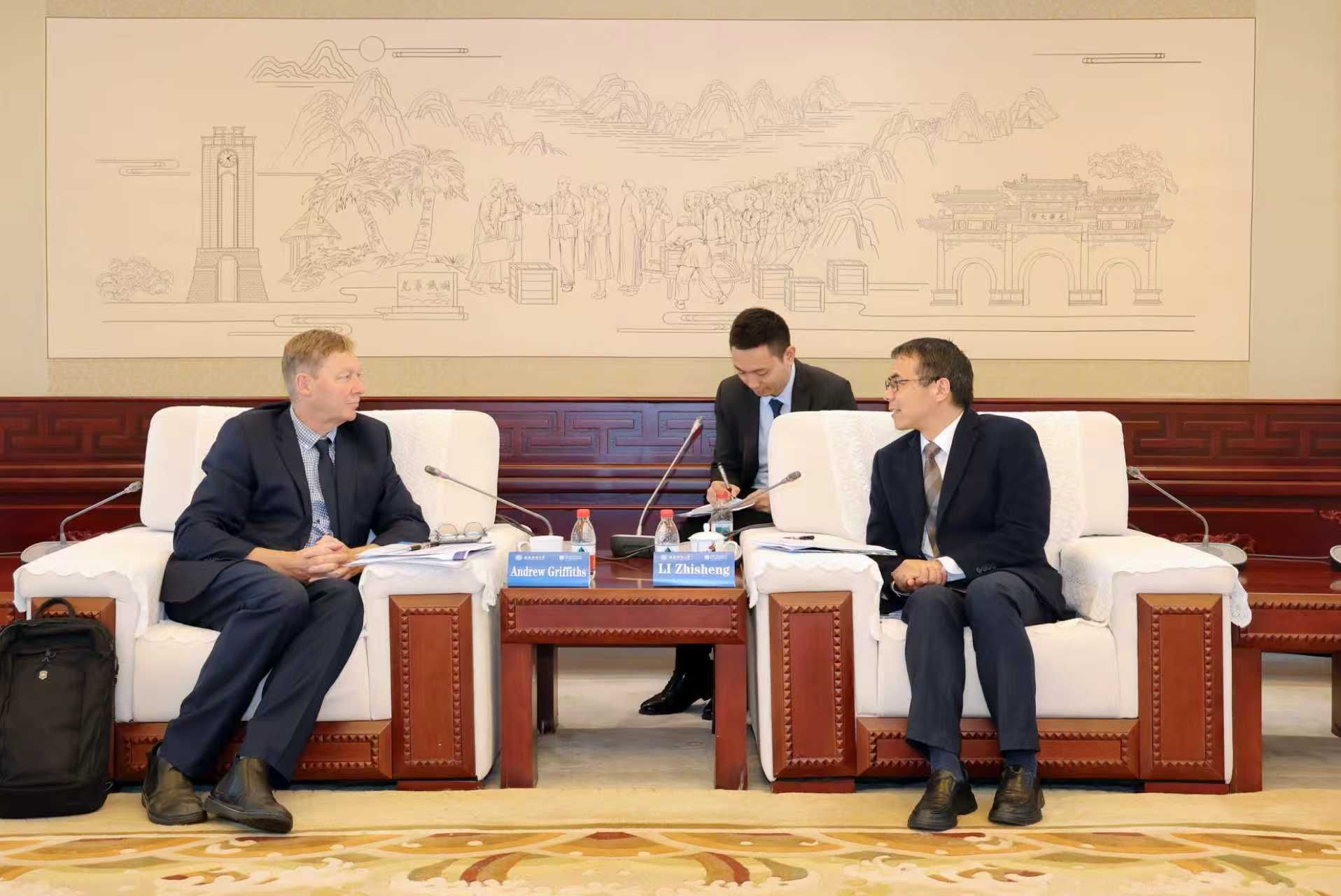 11月11日,澳大利亚昆士兰大学(The University of Queensland)商业、经济与法律学院执行院长安德鲁·格里菲斯(Andrew Griffiths)一行访问beat365。学校党委常委、副校长李志生会见来宾。