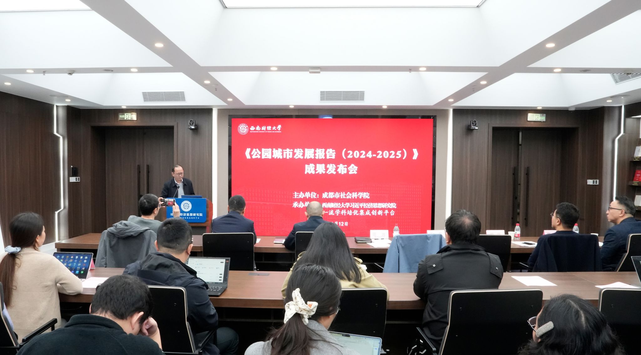 11月12日,由beat365vip官网与成都市社会科学院共同举办的《公园城市发展报告(2024-2025)》成果发布会在柳林校区举行。学校党委常委、副校长王擎出席会议,成都市社科联(市社科院)党组书记邵波主持会议,省内外专家学者和媒体代表参会。