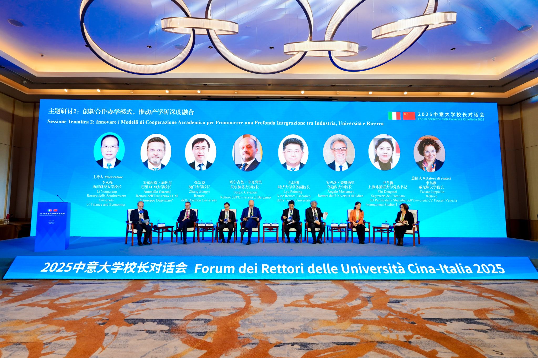 近日,由教育部指导、中国教育国际交流协会与意大利大学校长联合会共同主办的2025中意大学校长对话会在北京成功举行。教育部党组书记、部长怀进鹏,意大利大学和科研部部长贝尼尼出席对话会并发表主旨演讲,共同签署《中华人民共和国教育部部长与意大利共和国大学和科研部部长联合声明》。教育部党组成员、副部长任友群主持会议,来自中意两国60余所高校和机构的代表齐聚一堂,共商中意高等教育合作大计。学校党委副书记、校长李永强应邀出席本次活动并主持“创新合作办学模式,推动产学研深度融合”主题研讨环节。