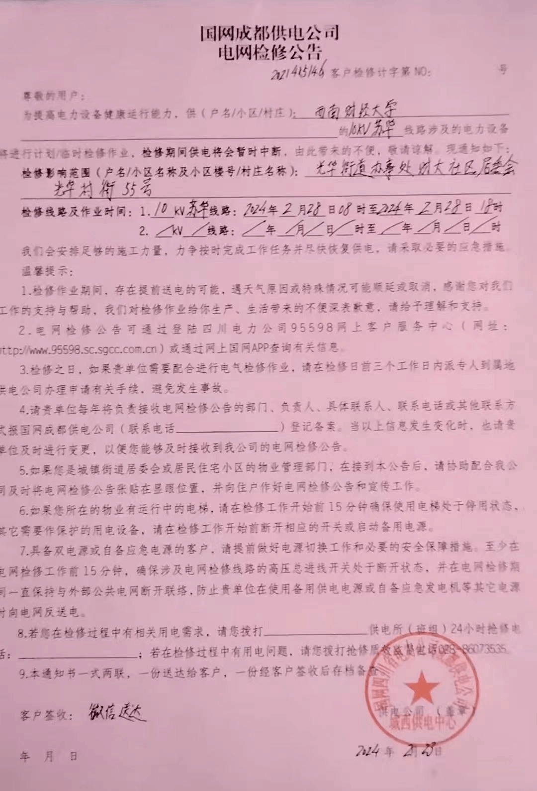 1.停电时间:2024年2月28日(周三)8:00至18:00。