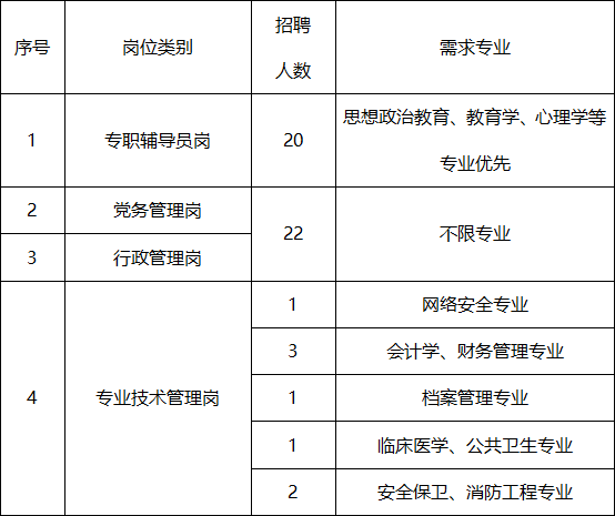因学校事业发展需要,经学校研究决定,2022年面向社会公开招聘专职辅导员和管理人员,具体招聘事宜如下: