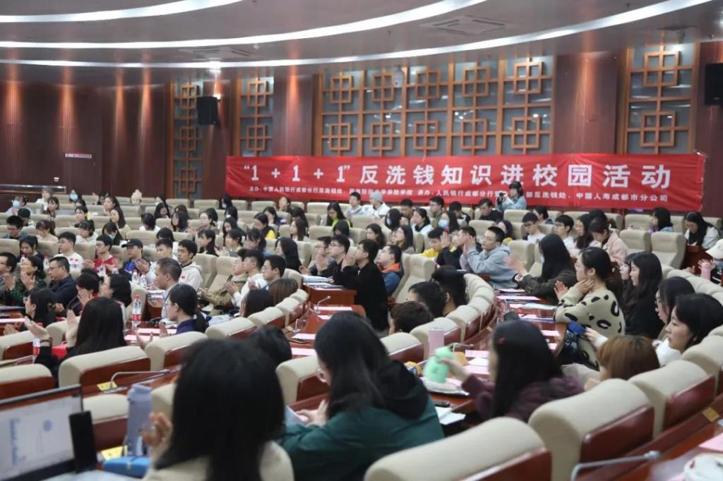 讲座环节,中国人民银行成都分行营业管理部反洗钱处王瑾副处长和中国人民银行成都分行营业管理部支付结算处杜垚垚分别带来主题为“反洗钱,人人有责”“防电诈,人人相关”的主题讲座。两位专家重点讲授了反洗钱的基础知识,并就“出租出借身份证、银行账户”“电信网络犯罪”以及“套路贷”等案例进行分析讲解并做出风险提示。
