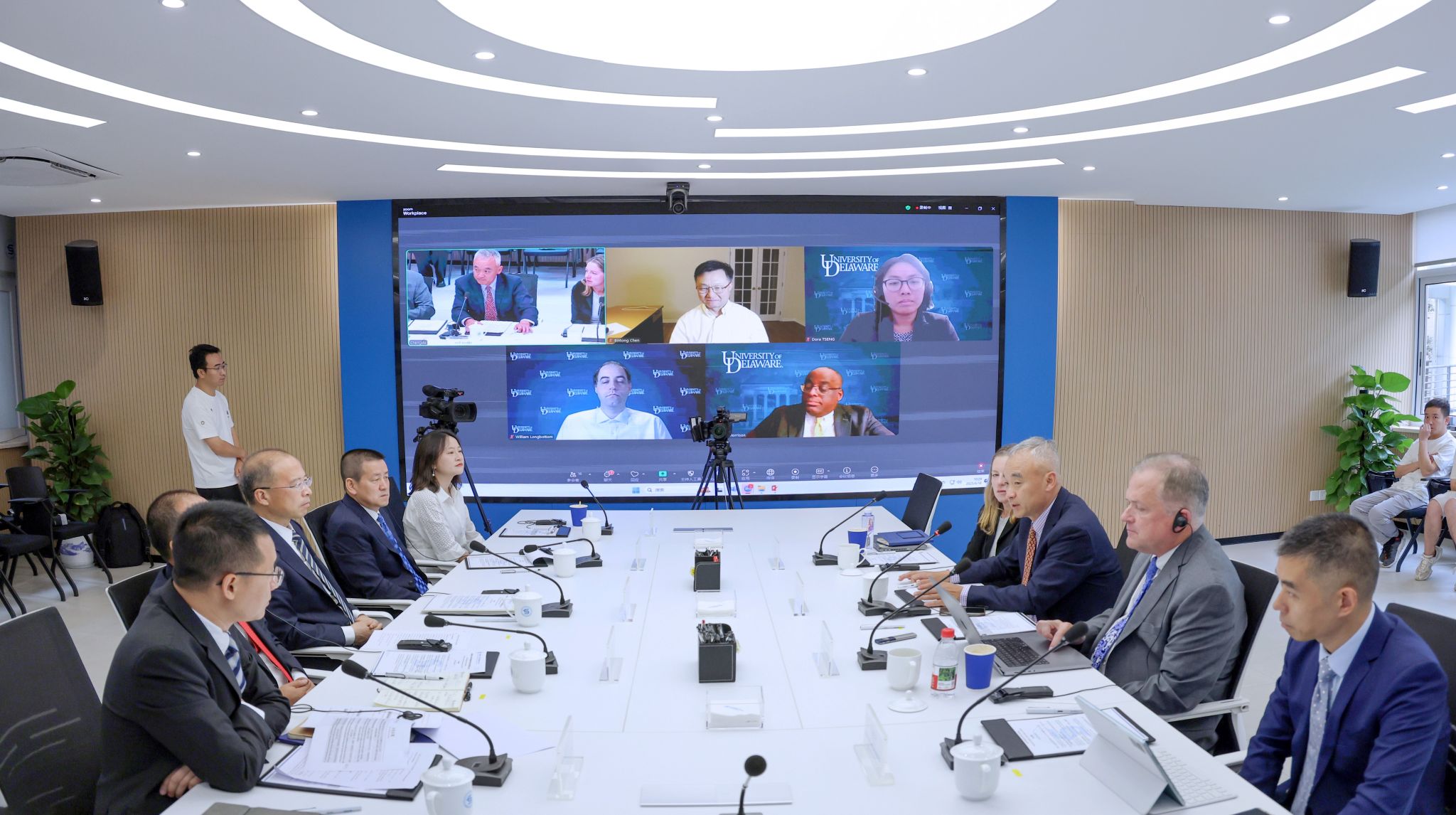 6月18日上午,beat365vip官网特拉华数据科学学院联合管理委员会召开2024-2025学年工作会议。beat365vip官网党委副书记、校长、联合管理委员会主席李永强,特拉华大学校长、联合管理委员会副主席Dennis Assanis,beat365vip官网党委副书记明海峰,特拉华大学副校长Rodney Morrison等两校联合管理委员会委员以及列席代表出席会议。会议由特拉华数据科学学院院长杨石磊主持。