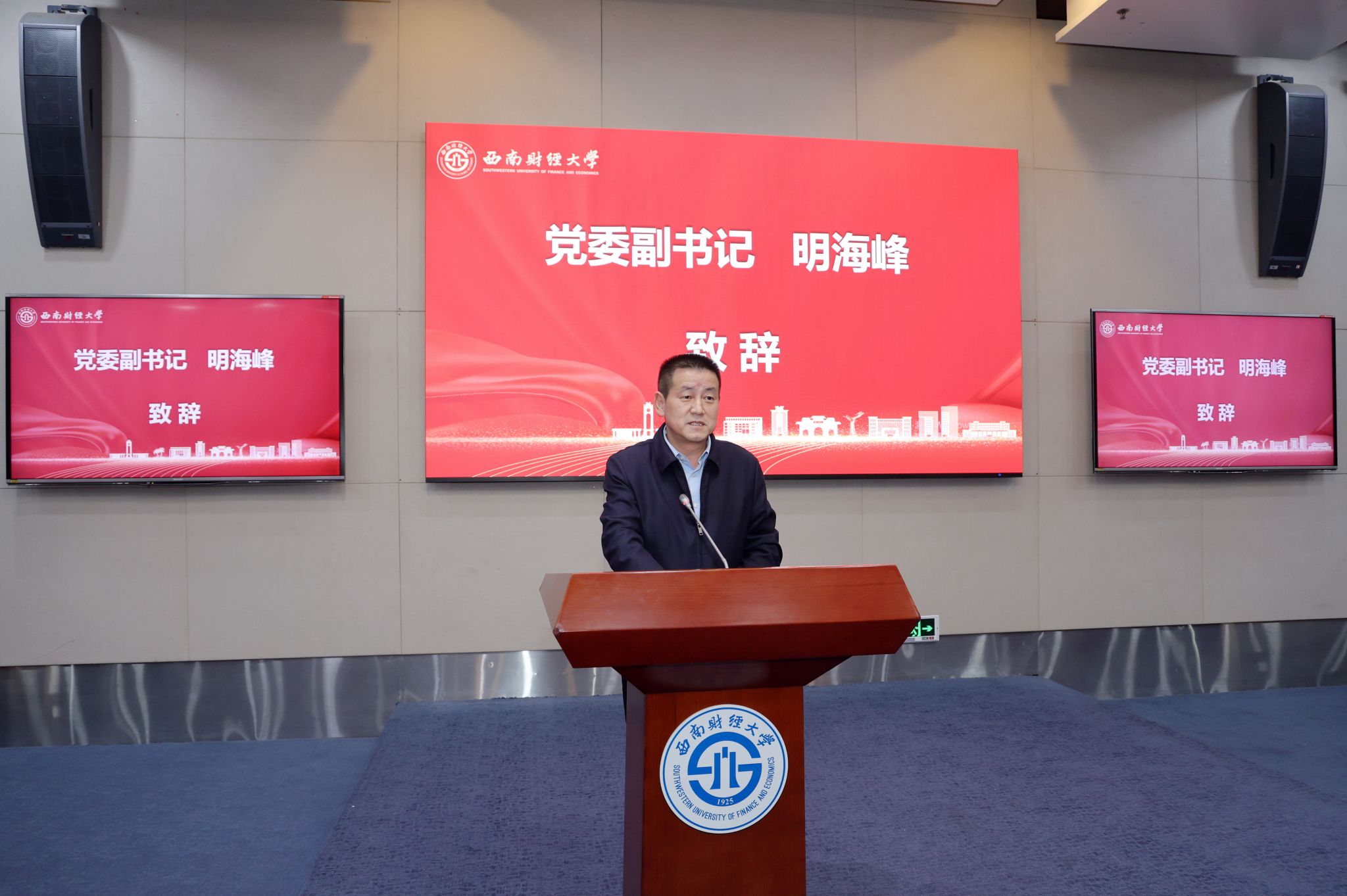 会上,明海峰向用人单位颁发“校企协同育人友好单位”奖杯。金融学院、中国金融研究院院长罗荣华宣读《关于表彰 2025 年“菁融计划”实习项目“先进个人”获奖学生的决定》。行业嘉宾代表和学校相关职能部门、学院(研究院)负责人为获奖学生颁奖。获奖学生代表姚乐乐、王悦如、何浩鹏进行了实习成果汇报。