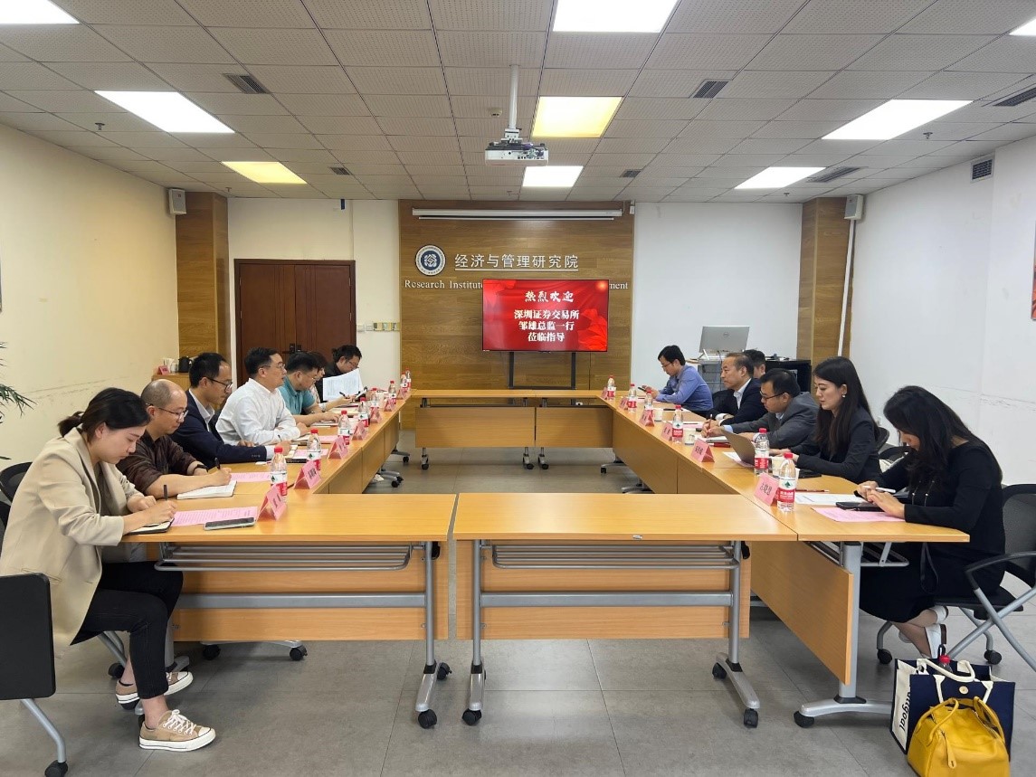 10月17日下午,深圳证券交易所基金部总监邹雄、富国基金管理有限公司总经理助理张鹏和东方财富信息股份有限公司市场部总监安佳媛等人到访经济与管理研究院。beat365vip官网学生职业规划与就业指导中心主任徐利军、国内合作与发展处处长赵海程,经济与管理研究院常务副院长董艳、党委书记黄文、党委副书记魏望以及相关教师参加了座谈交流。