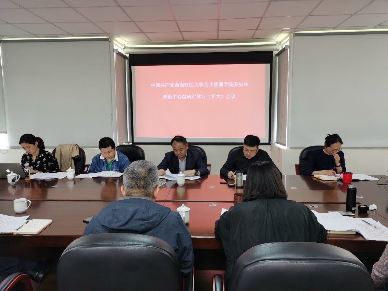 4月27日下午,公共管理学院于通博楼A320会议室召开理论学习中心组研讨学习(扩大)会,开展“学史明理,深悟创新理论伟力” 专题学习研讨。会议由公共管理学院分党委书记赵海程主持,理论中心组成员参加,教师党支部书记、师生党员代表列席。学校党委常委、副校长张邦富、党史学习教育第13指导组成员赵虎到会指导。